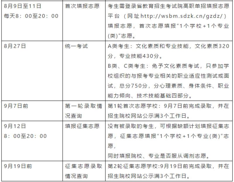 具有山东省户籍或在山东务工(需提供6个月以上劳动合同证明)、具有高中阶段学历或同等学力人员;非山东省户籍的就业人员随迁子女(含进城务工人员随迁子女)应具有山东省高中段学校学籍及完整学习经历,并合格毕业。需要非常注意的是,高中阶段应届毕业生不能报考B类、C类。已参加2019年我省春季高考或夏季高考考试的考生,不再参加本次单独招生报名及考试。